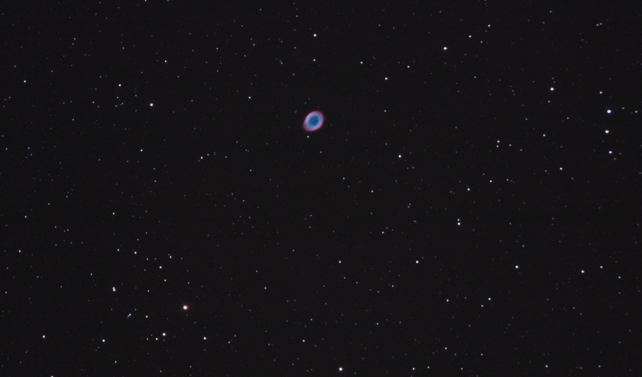 M57-GSO8-360sX2a immagine ripresa con GSO 8″ e sommando 2 pose da 360 secondi con Canon 550D spianatore di campo Tenosky, Filtro Orion skyglow e raffreddamento Coolbox